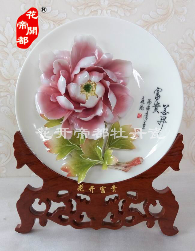 產品系列主要包括:牡丹瓷花盤、牡丹瓷屏風、牡丹瓷盆景、牡丹瓷壁掛和牡丹瓷鼎,形式多種多樣!每一件作品都是藝術的結晶,花、枝、葉均是手工捏制,造型逼真生動。